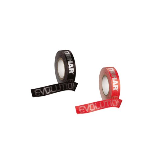 In der kleinen Größe (12mm/5m) ist es in den Farben rot und schwarz erhältlich. Bei beiden Farben ist die Schrift silber mit dem Schriftzug Tibhar Evolution.